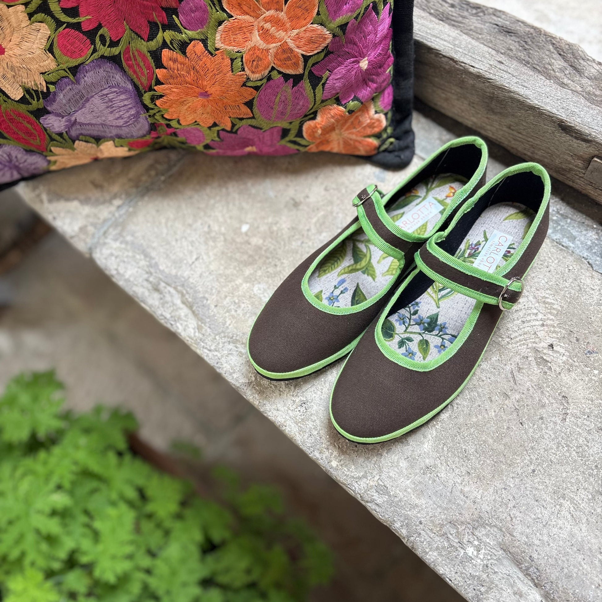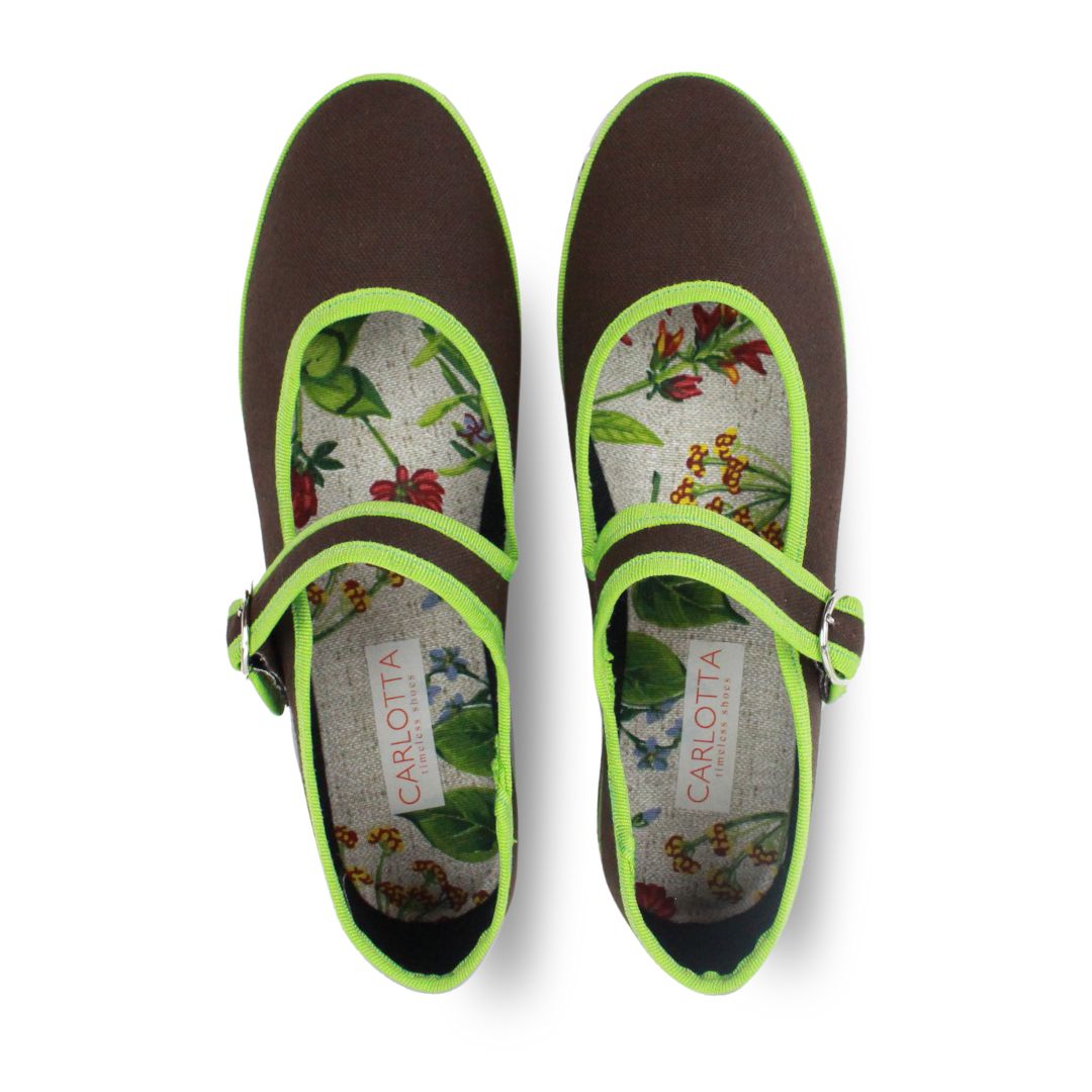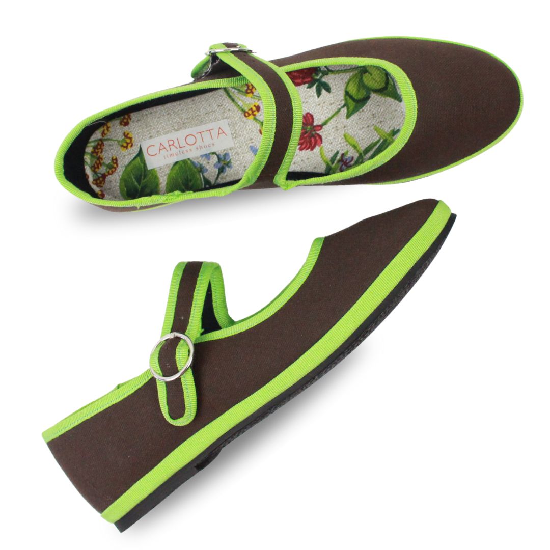 ¿Ya viste la novedad? Los Mary Jane en canvas de algodón son una opción fresca y cómoda para los días calurosos. Están realizados con un canvas italiano en color chocolate y un ribete en un llamativo tono verde. Pruébalos y enamórate de ellos.