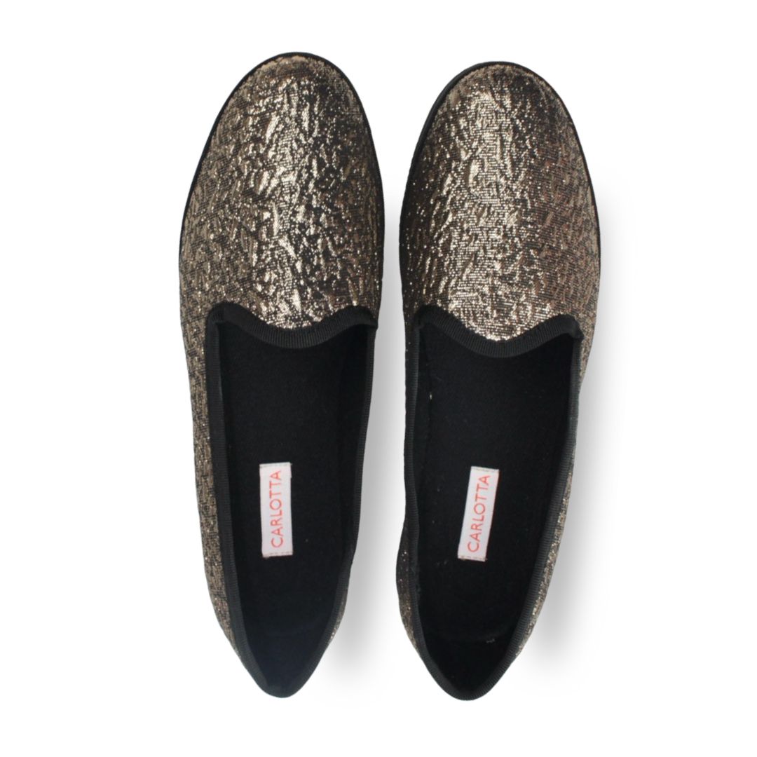 ¡Unos slippers venecianos son los zapatos atemporales que no deben faltar! Dale a tu look un toque de estilo con este tejido brocado en color oro antiguo. Estas slippers son ideales para un look refinado, perfectas para agregar luz a tu outfit. Úsalas para viajar, para una comida con amigos, para un evento o simplemente para recibir en casa con elegancia. Combina estos slippers con tonos oscuros para que resalten.
